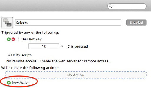 Next, click the New Action button at the bottom of the window.