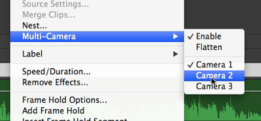 You can also change angles in the timeline. Right-click the multiclip and choose Multi-Camera > Camera [number].