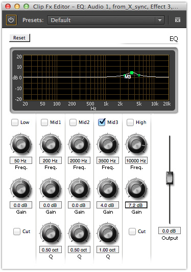 In this example I’ve raised, I’ve checked the Mid3 parameter and entered 3500k Hz, the frequency I want to affect, and raised its volume 4 dB.